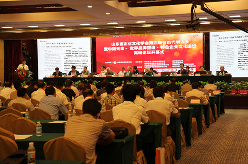 本報訊 山東省企業文化學會第四屆會員代表大會暨中國元素•世界品牌塑造•特色企業文化建設高端論壇于9月24日-25日在山 東臨沂舉行,來自國家部委與省領導同志、國內著名專家學者、國家相關文化社團負責人、部分兄弟省市企業文化學會負責人、著 名企業家、媒體代表等300多人參加了會議。